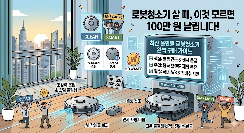 - 핵심 트렌드: 이제는 먼지 비움부터 걸레 세척, 건조까지 다 해주는 **’올인원’**이 대세!